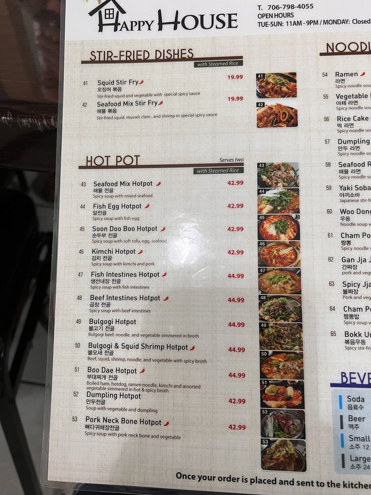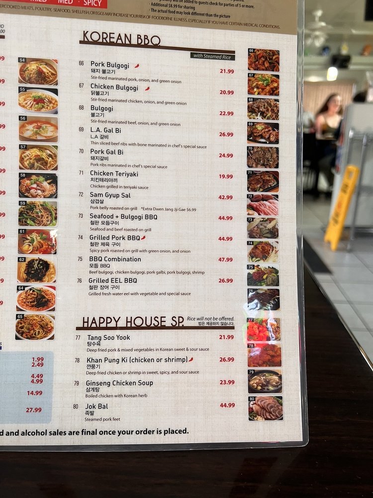Happy House Korean Restaurant in Augusta, GA offers a diverse menu with options for all preferences, including many vegetarian choices. The restaurant provides a casual dining experience with a variety of amenities like free Wi-Fi, TV, and gender-neutral restrooms. Customers praise the authenticity of the dishes, with highlights like the steamed egg soup and the pork bulgogi. Despite some negative reviews regarding food quality, others appreciate the generous portions and reasonable prices, especially during lunch specials. The ambiance is described as clean and vibrant, with Korean-style decorations and performances on TV. Overall, Happy House Korean Restaurant seems to be a popular spot for those craving authentic Korean cuisine in the area.